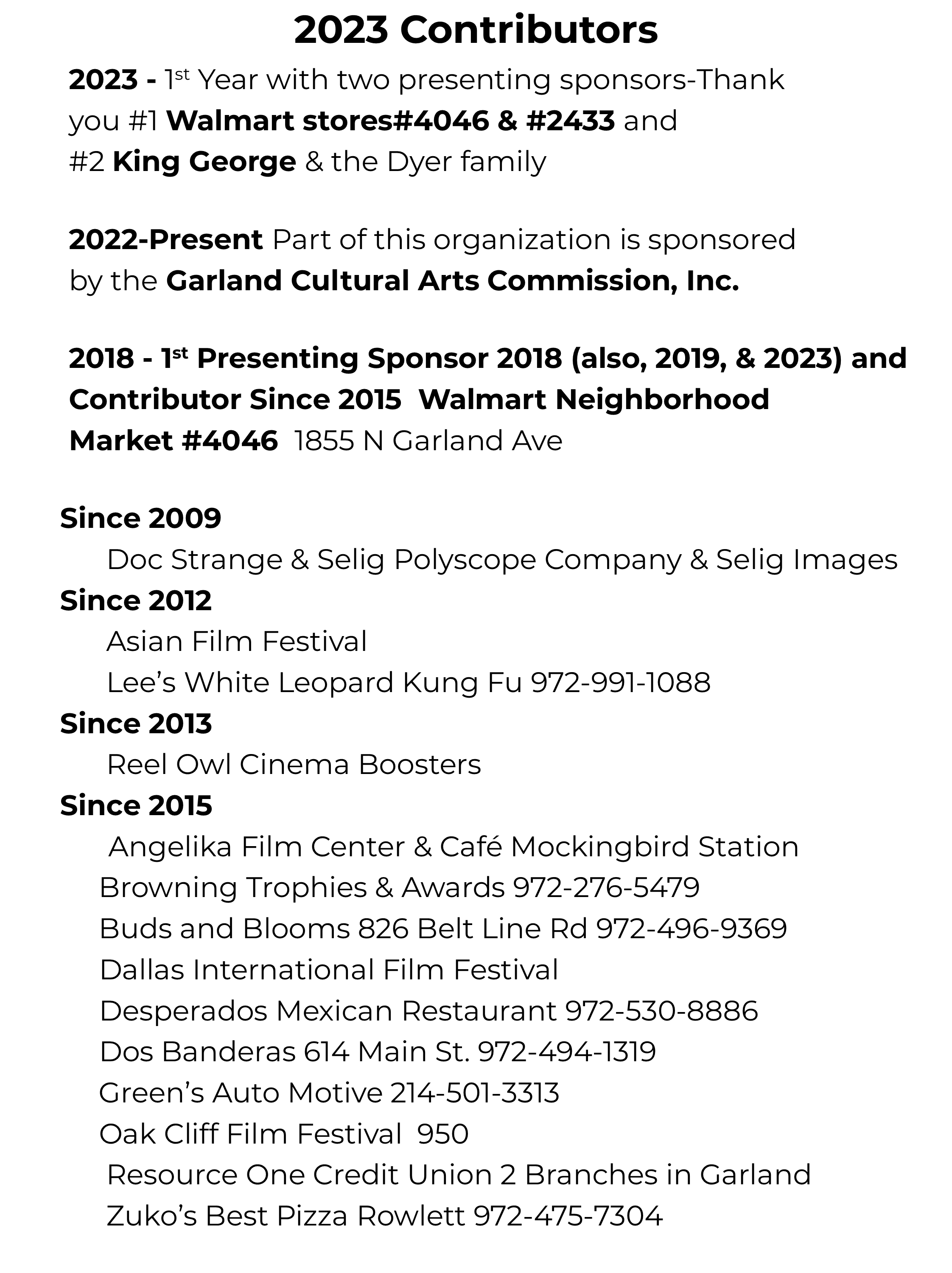 NOTE: The slide Presentation to right was shown during the 2023 festival as the audience entered the facility before films began.  It has all our sponsors/contributors that appear in our program.