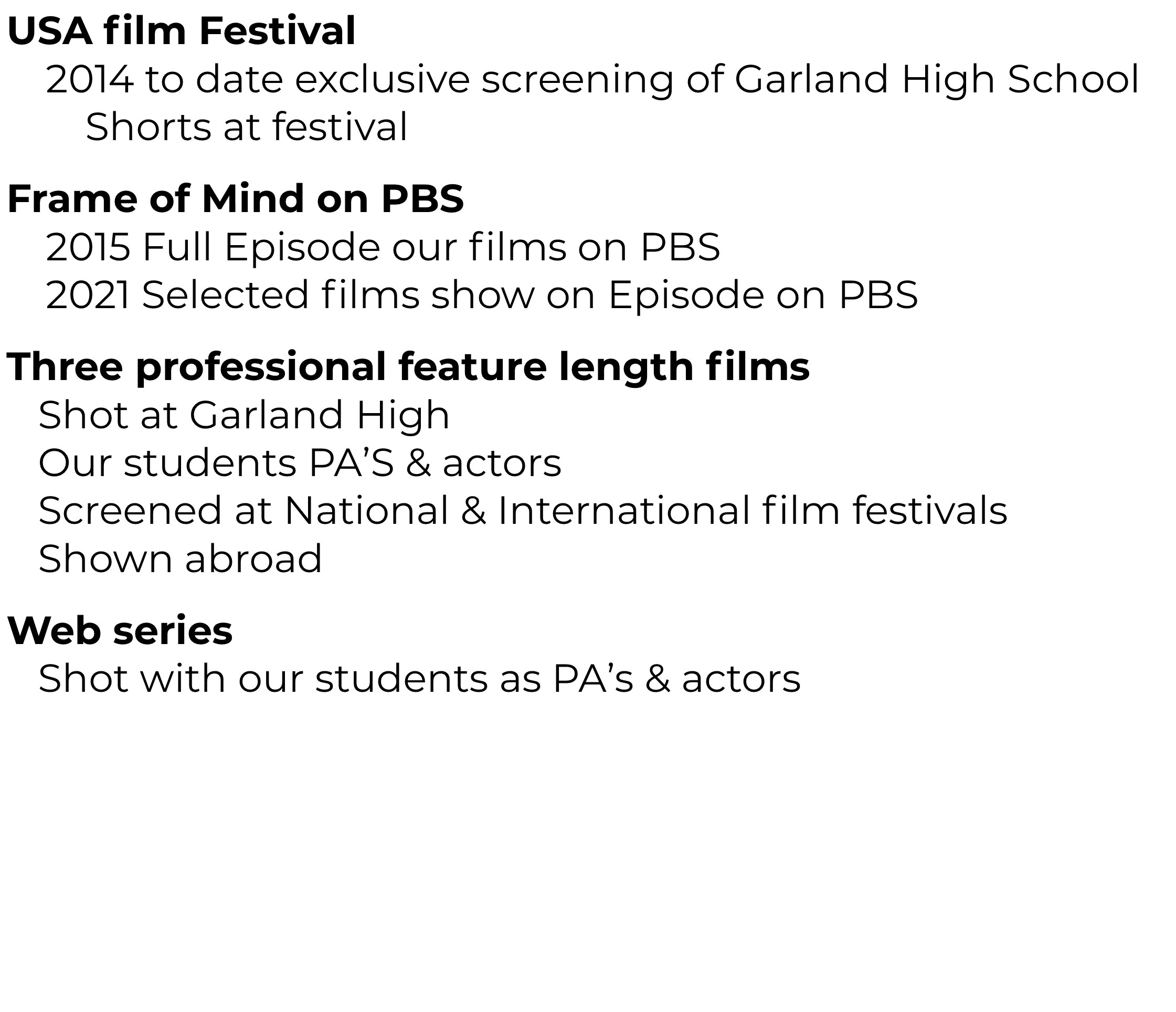 Hundreds of our student films have been officially selected to multiple film festivals, both local and international, since 2006.