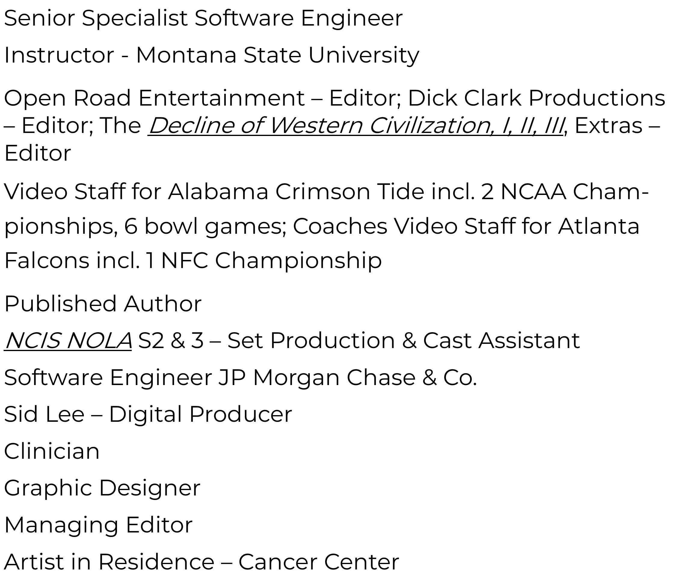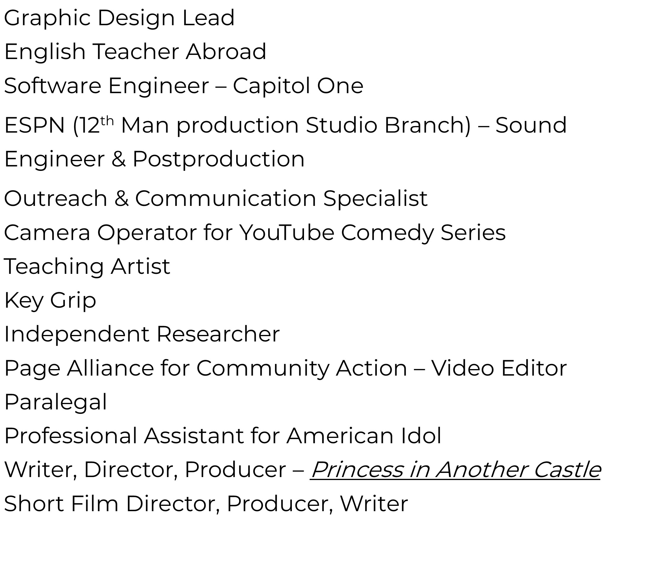 “In my current career as a Professional Counselor at a private practice, I am starting to create more videos for marketing and online webinars and am excited to continue to use my film skills to grow in my professional career.” Sarah 2012